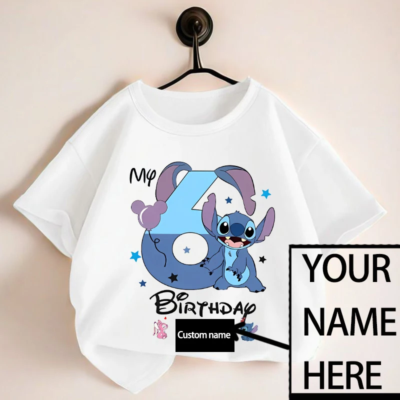 Cartoon Disney Stitch Birthday Top Cotton Customized Name T-shirt