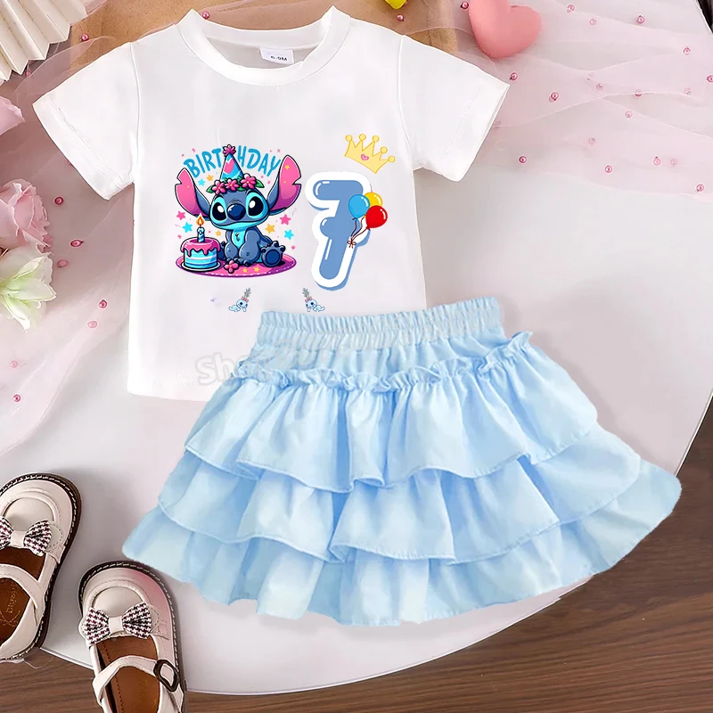 Disney Stitch Birthday T-shirt Dress Set for Children