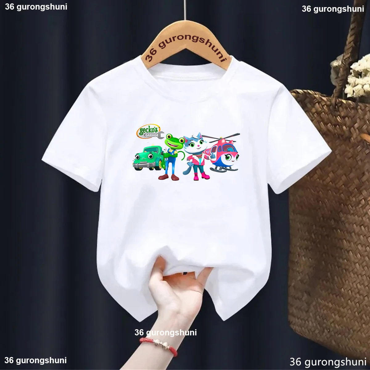Boys T-Shirts Animation Garage Geckos Cartoon Print Kids T=-shirt